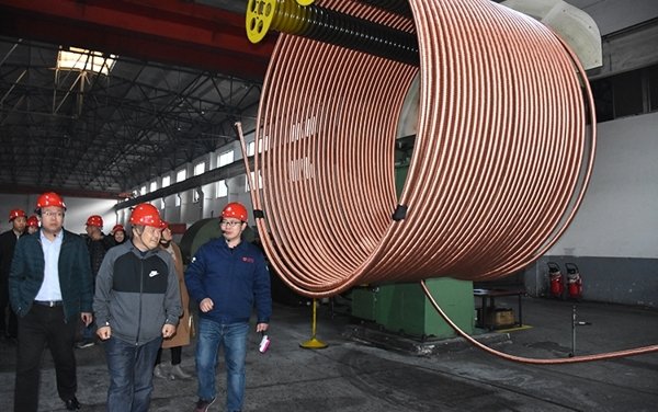 參觀團在生產(chǎn)經(jīng)理帶領(lǐng)下來到銅業(yè)公司生產(chǎn)車間,詳細聽取和了解宏泰連鑄連軋自動化銅管生產(chǎn)工藝,針對生產(chǎn)管理提出了寶貴的建議和意見。
