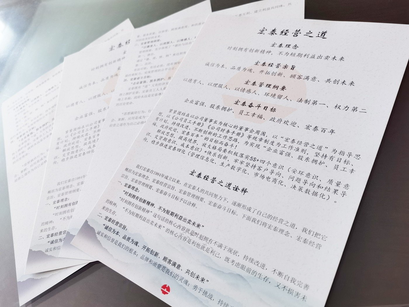 幾十年經(jīng)營企業(yè)的不斷探索,與市場打交道的過程中,李保成先生提出了“企業(yè)富強(qiáng)、股東擁護(hù)、員工幸福、政府歡迎、宏泰百年”的奮斗目標(biāo)與使命。